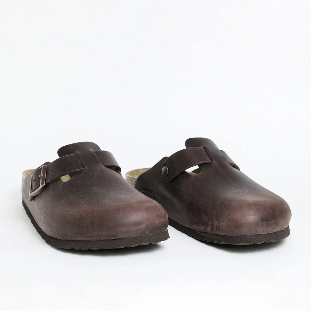 The BIRKENSTOCK Boston is a veritable classic that can easily be worn all year round. The Boston has a legendary status thanks to its sophisticated, individual design. With its additional foam layer, the soft footbed offers extra comfort and pampers feet – all day long. The upper is made from extra thick, oiled nubuck leather with an open-selvage finish.