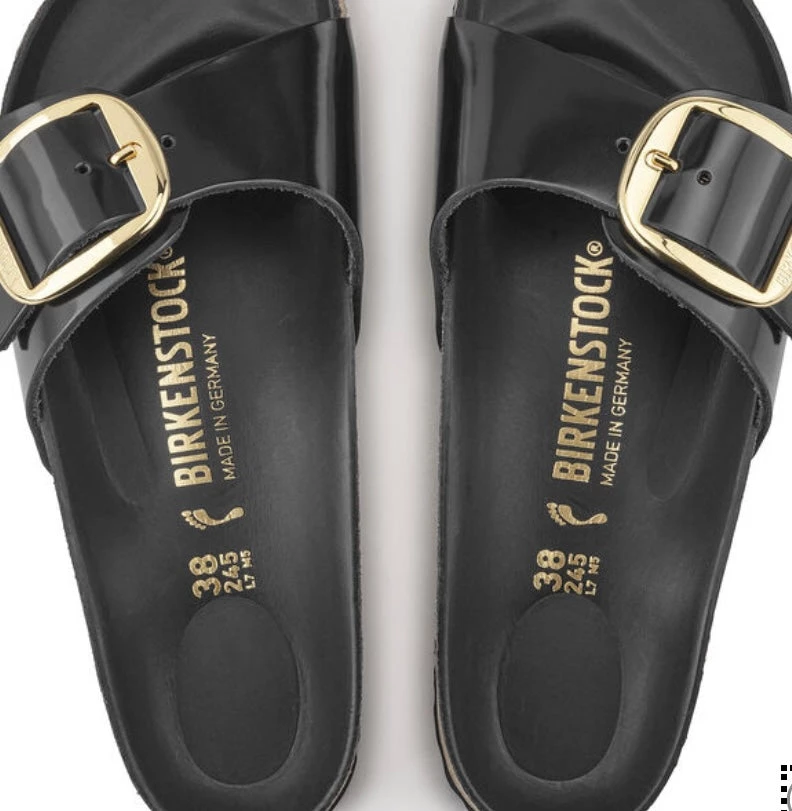 The original BIRKENSTOCK Sandal. A strap, a buckle, and a contoured cork footbed are masterfully combined to create the Madrid. An iconic slide with an amplified buckle accent. The semi-exquisite footbed is fully lined with soft piumato leather, making it exceptionally comfortable. The upper is made from high-quality natural leather with a high shine finish.