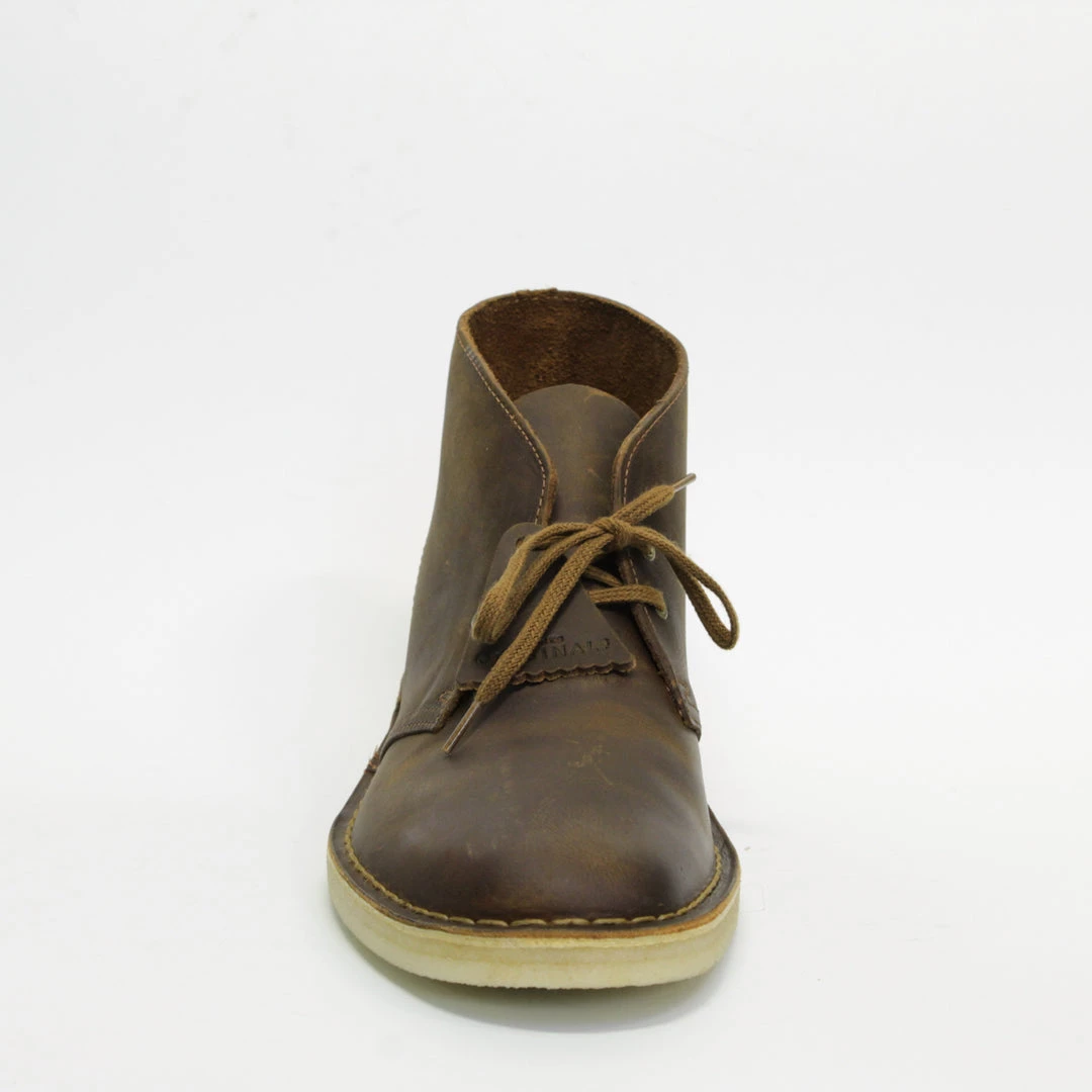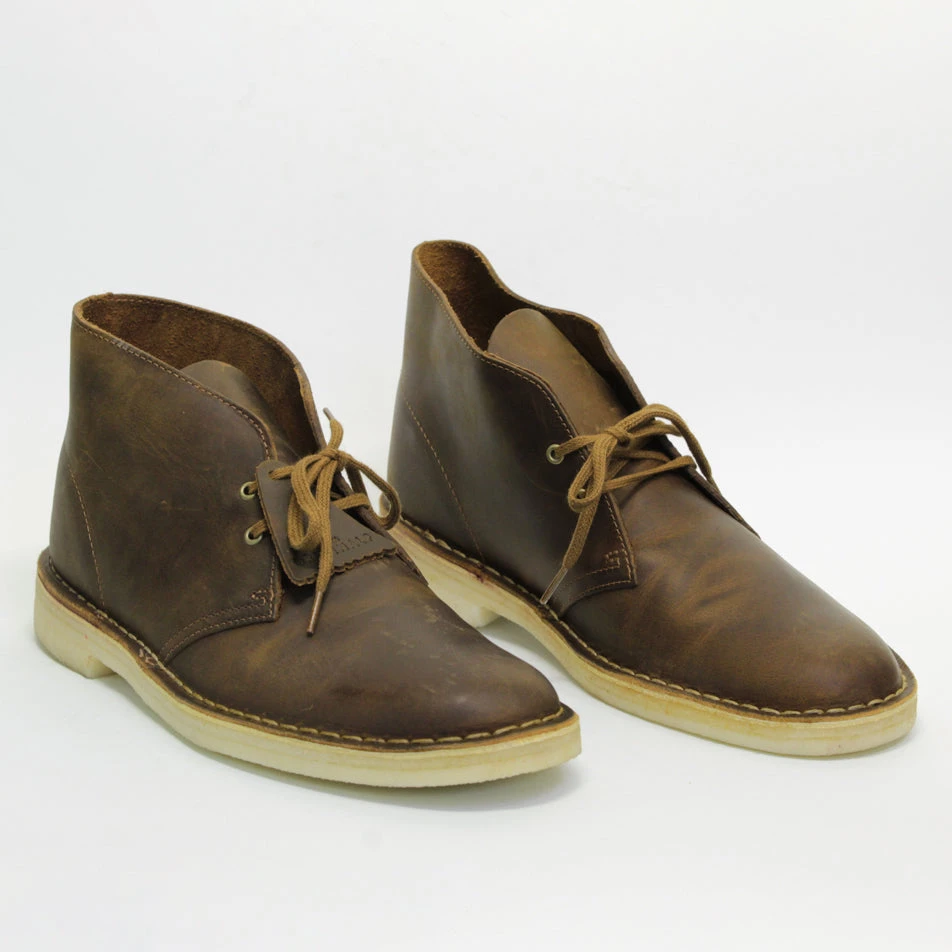 Stylish and versatile, the original Desert Boot from Clarks launched in 1950 by Nathan Clark and was inspired by a rough boot from Cairo’s Old Bazaar. An instant hit, it became the footwear of choice for off-duty army officers. Premium beeswax brown leather is teamed with an unfussy lace fastening and our signature crepe sole.