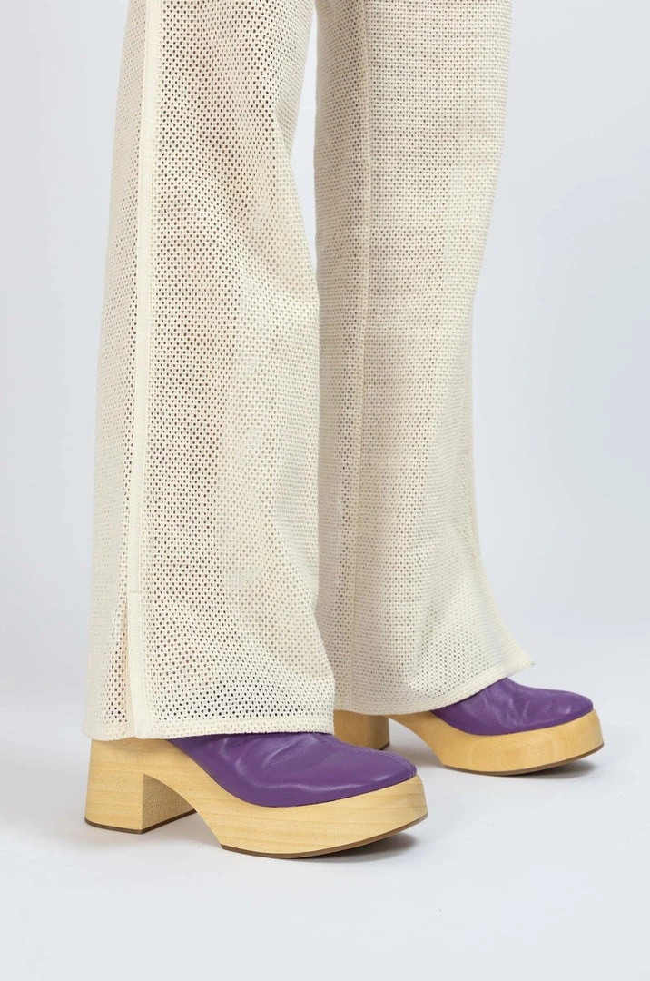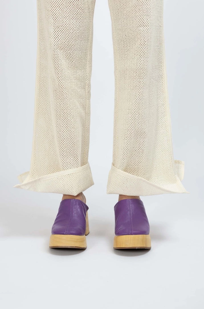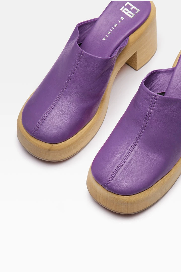 A playful pared-down version of the classic clog, Roberta’s soft purple nappa upper meets the rounded edges of our smooth wooden clog sole, minus the studs. We never want to take ours off.