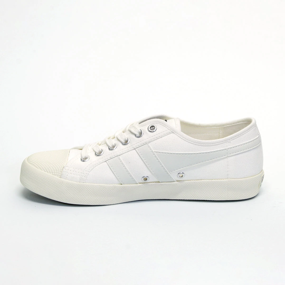 Gola ladies Coaster trainer was described as the superior quality, canvas, sports and leisure shoe. These true classic, iconic trainers made their first debut in 1976. Features include, metal eyelets, a rubber toe cap and the iconic Gola branding.