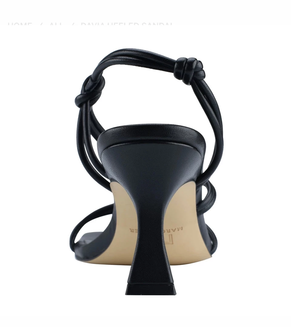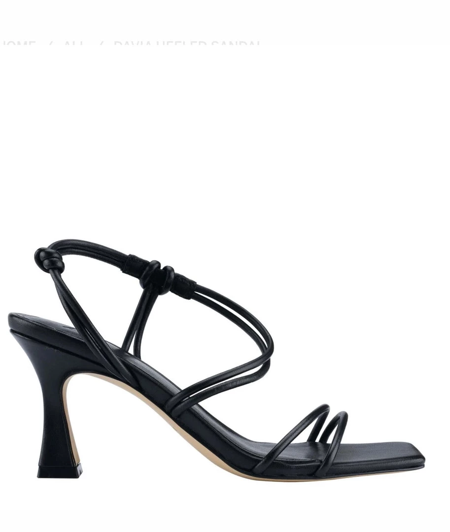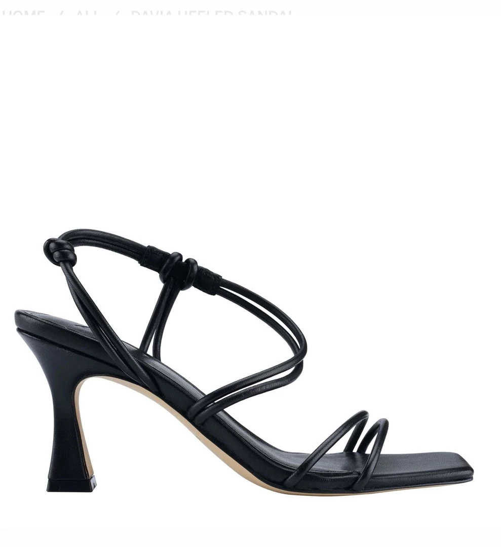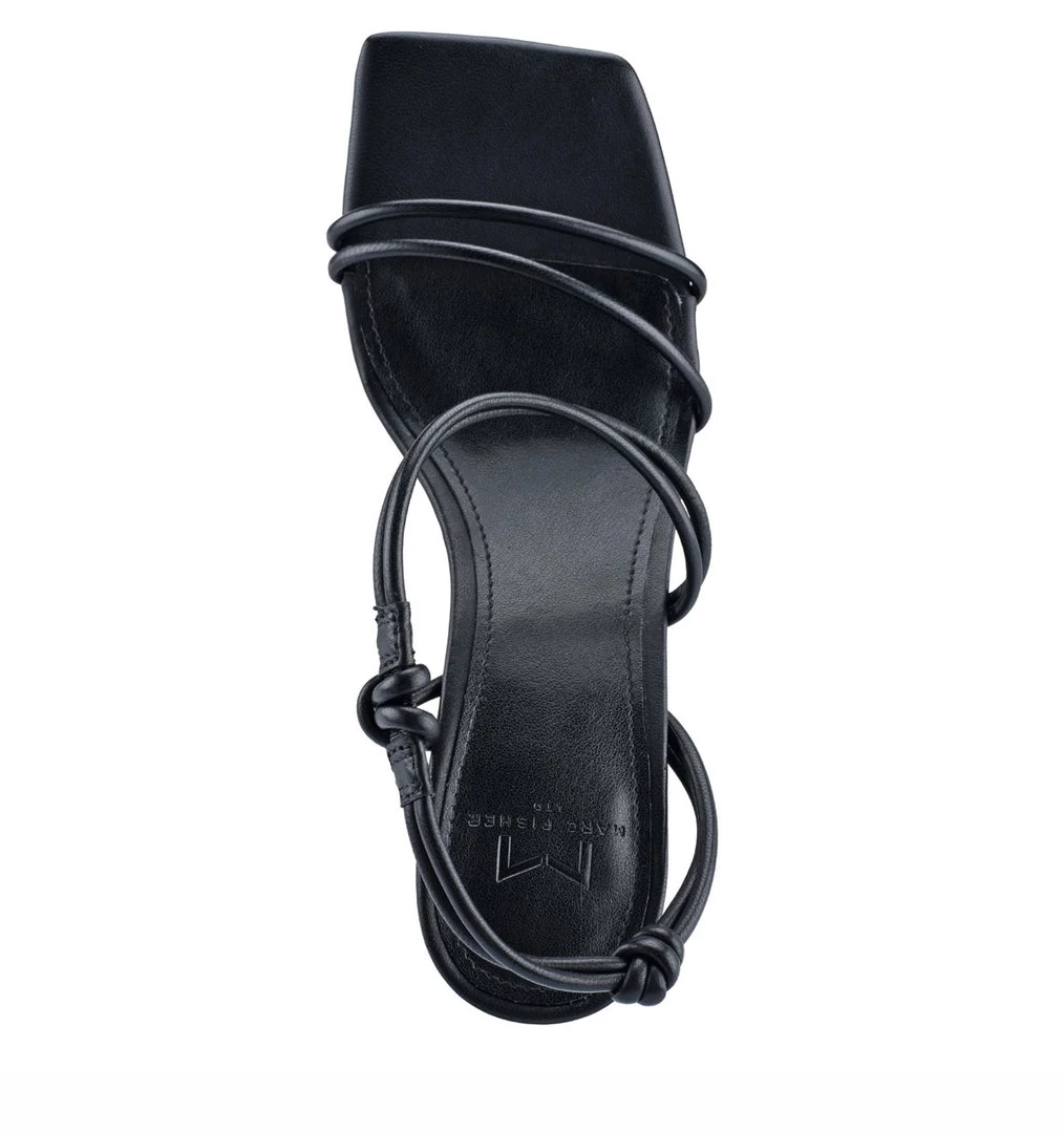 Slim straps detail a minimalist sandal framed by a trend-right square toe and flared kitten heel.