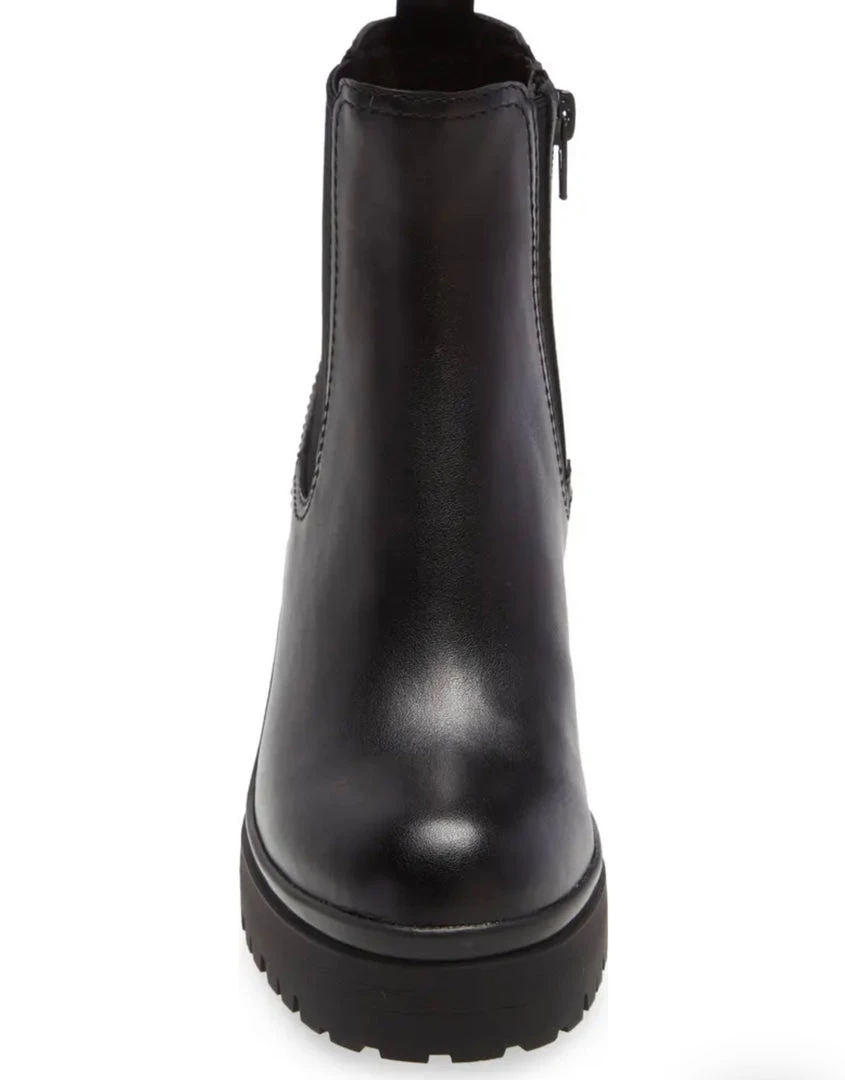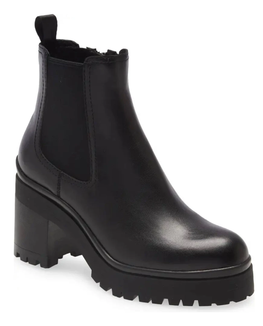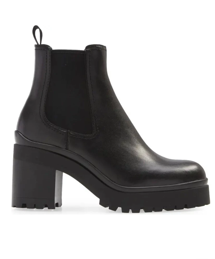 A platform sole plays up the contemporary appeal of this streamlined leather Chelsea boot.