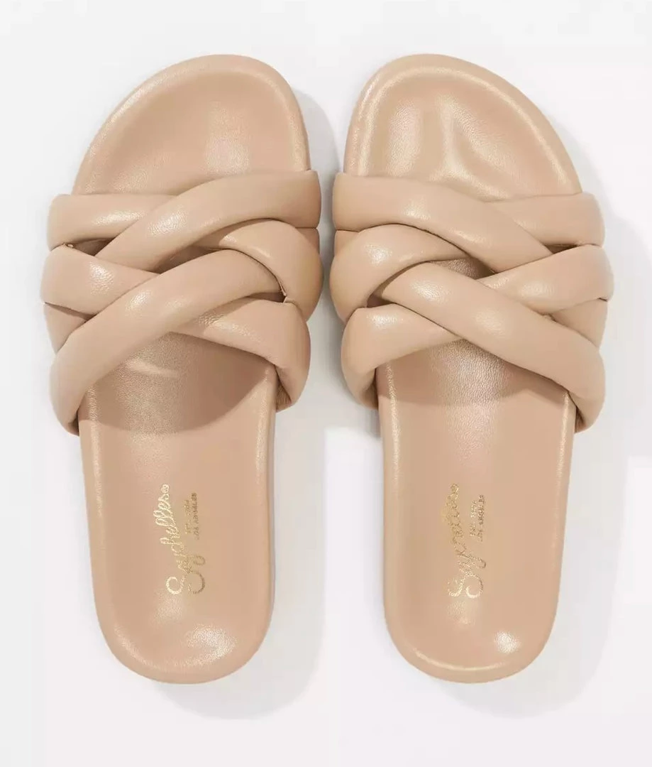 A seasonal essential with a modern twist, step out in this trendy puff style featuring a woven lattice upper.