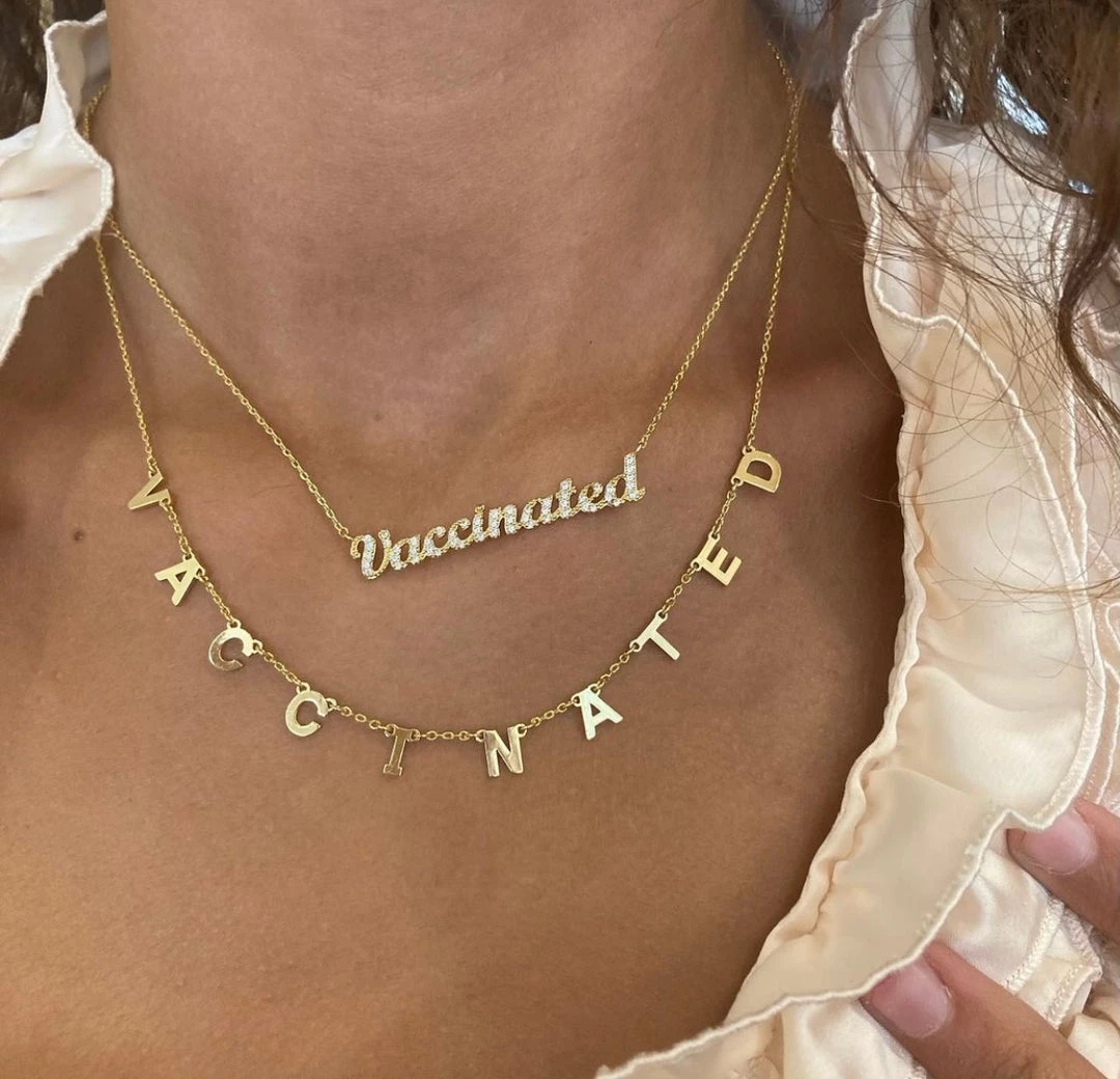 Tell the world your status with our “vaccinated” necklaces ! Let us know when placing your order which style you prefer.