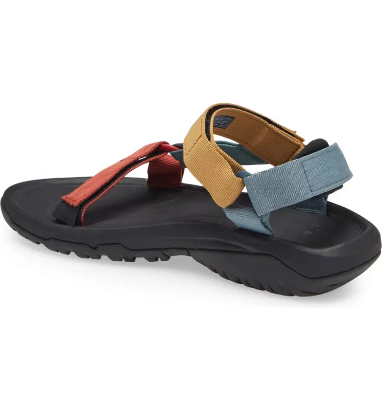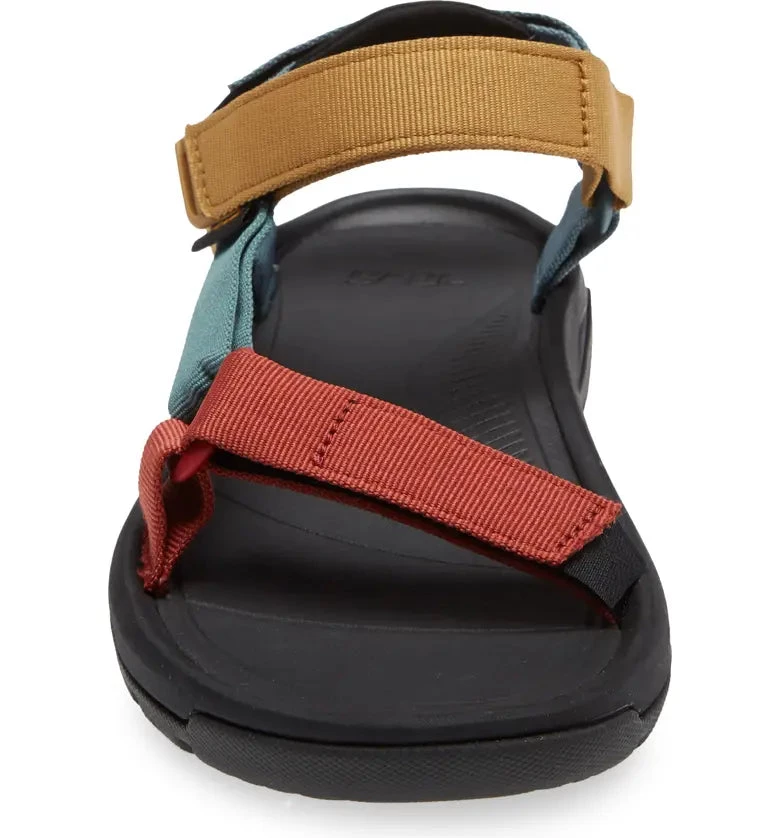 Adjustable hook-and-loop straps mean a custom fit in a water-ready sandal featuring a shock pad and padded heel for additional cushioning.