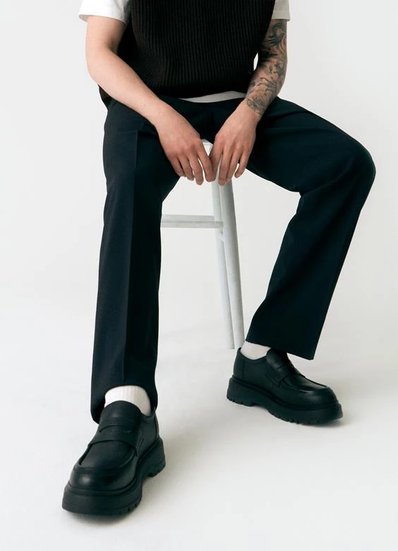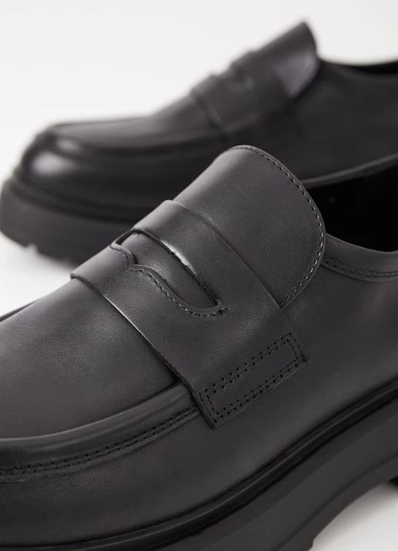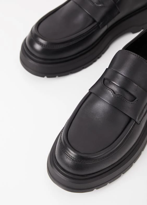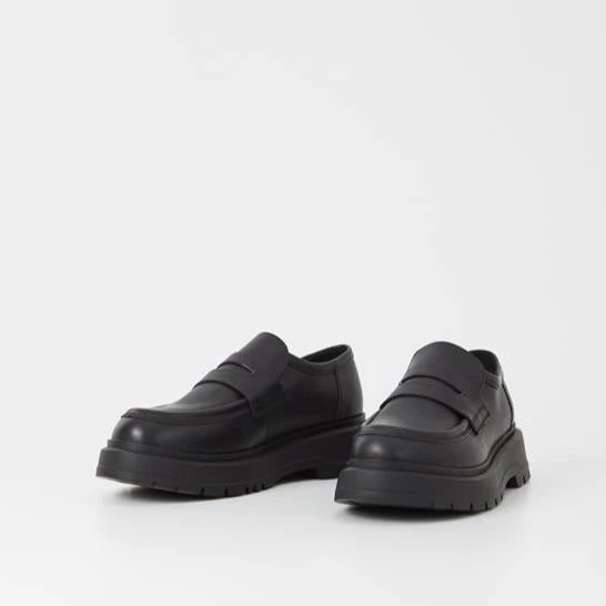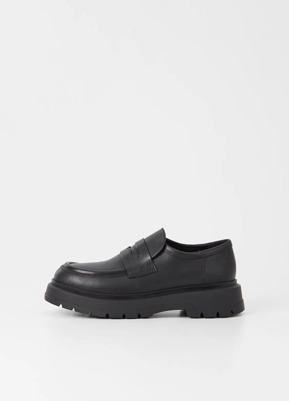 Jeff is the chunky penny loafer with inspiration from our archives. The style is crafted from black leather, featuring a classic Penny strap across the vamp, generous toe shape and raised seams. The chunky rubber outsoles measure 45mm.