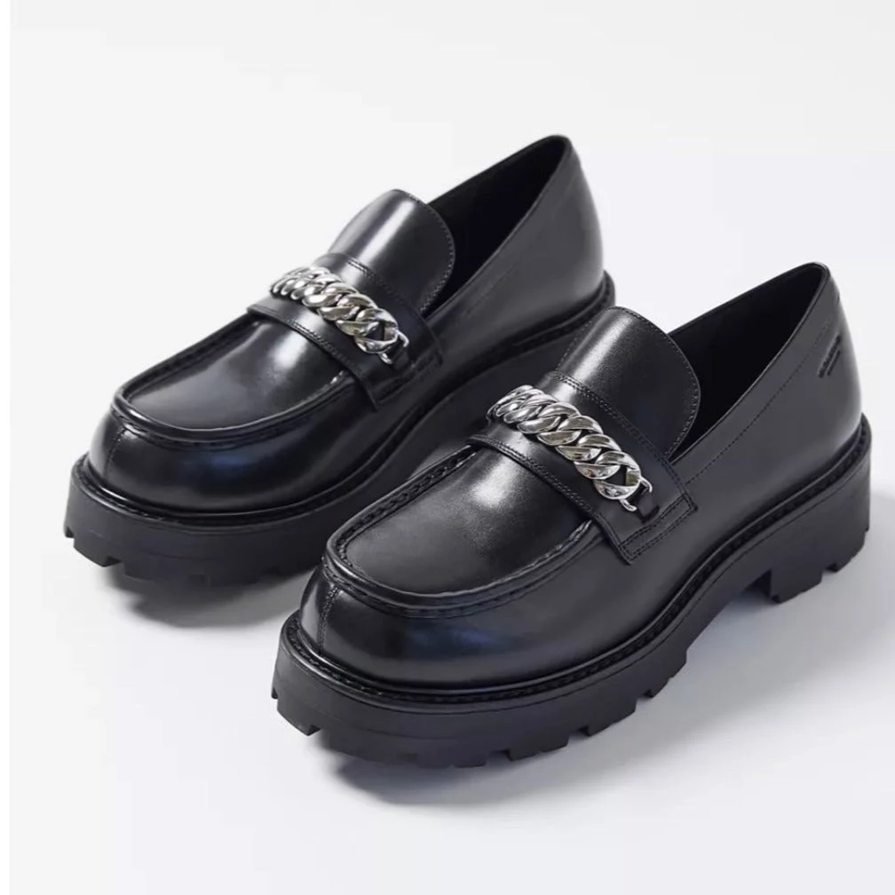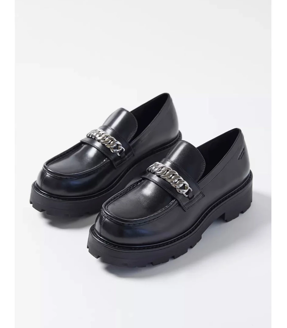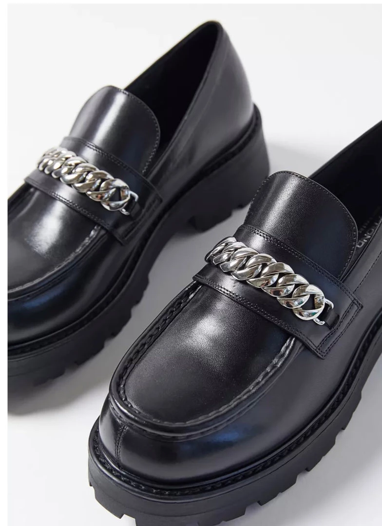 The classic cosmo loafer by Vagabond Shoe Makers with an added silver chain.