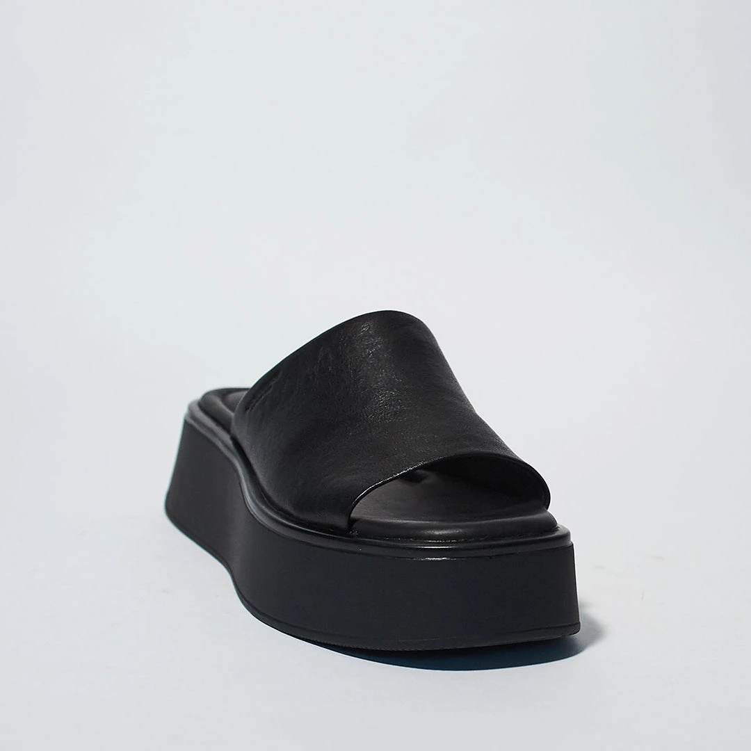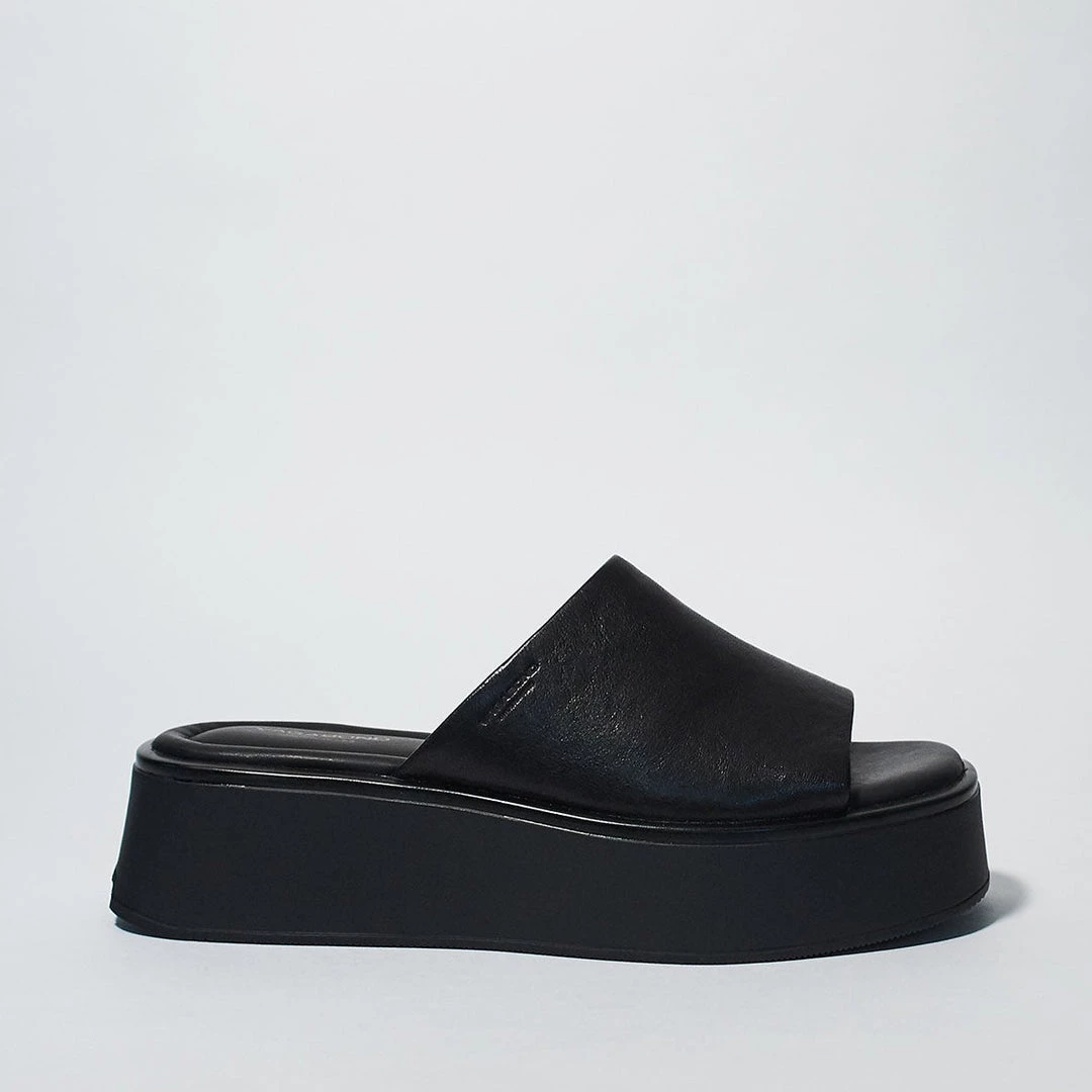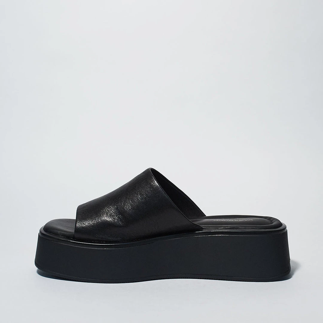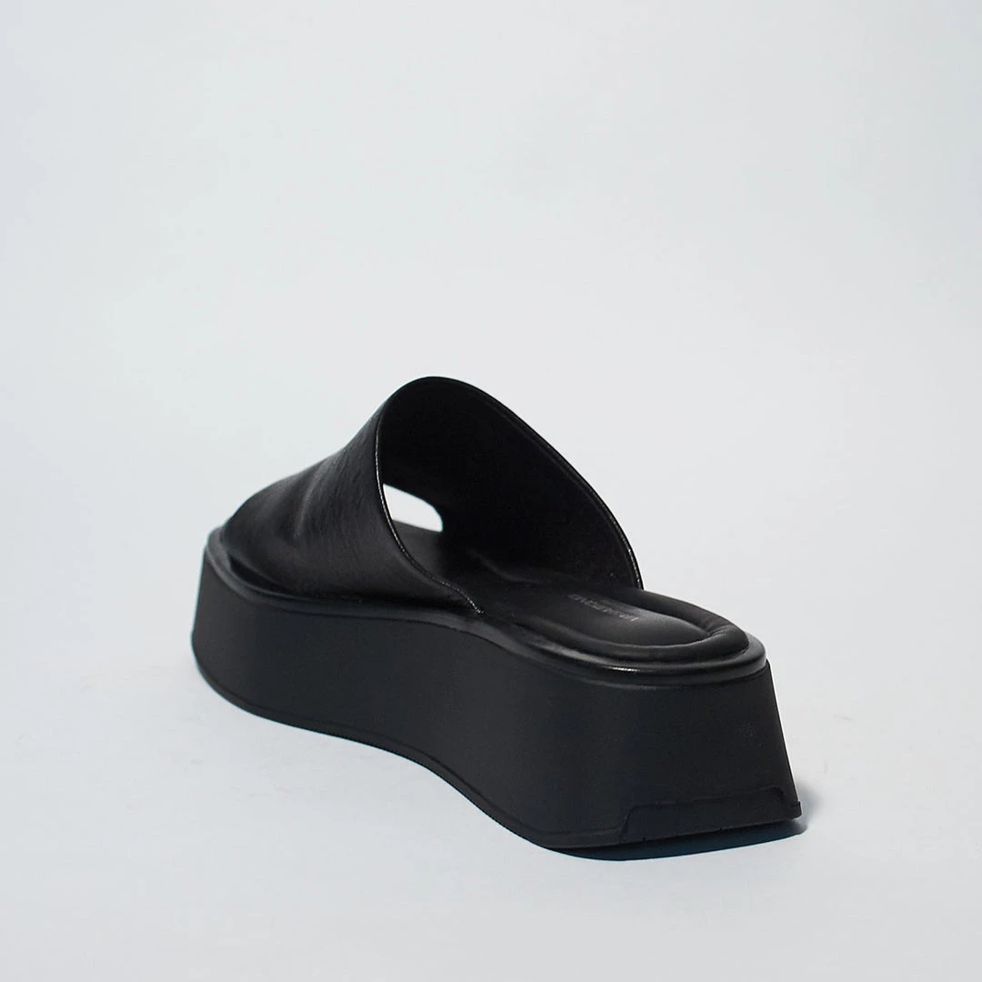 - A gently flared platform sole brings statement-making height to a sleek and well-cushioned slide sandal topped with a supple strap.