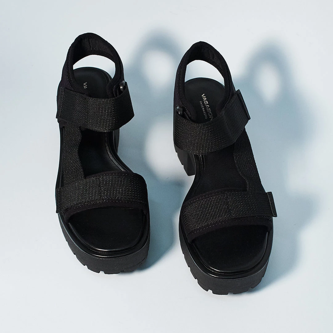 This is a special sandal for all you Dioon fans. Vagabond has perfected the chunky sole to add edge and height in a wearable shoe. Teva style upper in black or pastel rainbow . Wear it with socks while its cool and bare as the weather heats up.