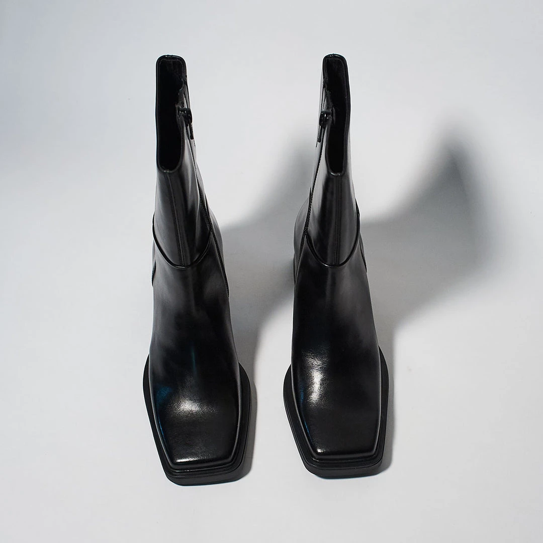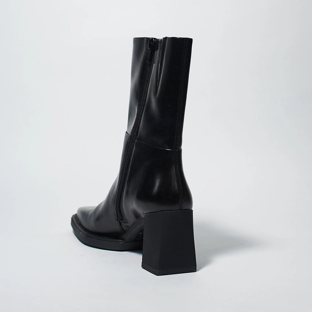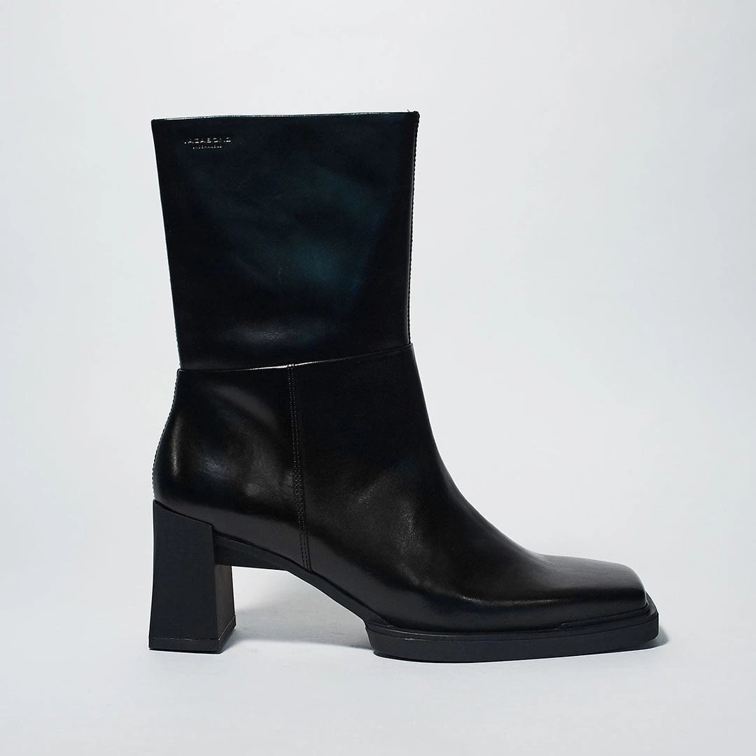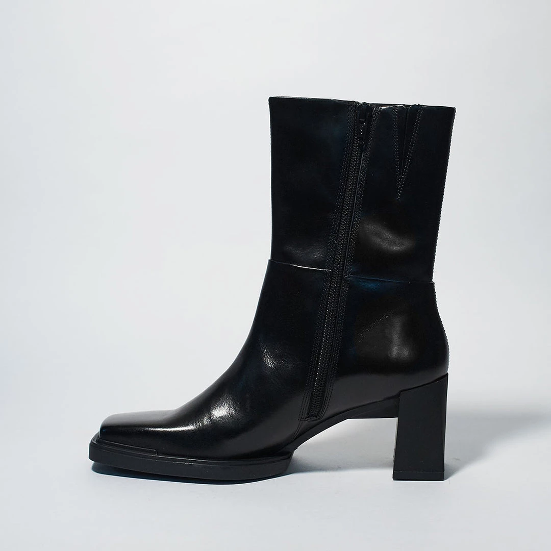 Edwina by Vagabond is a mid-high boot with a refined silhouette and classic inspiration. Crafted from smooth leather with a block heel and square toe traced with bits of rubber for a retro feel . Interior zipper for easy wear.