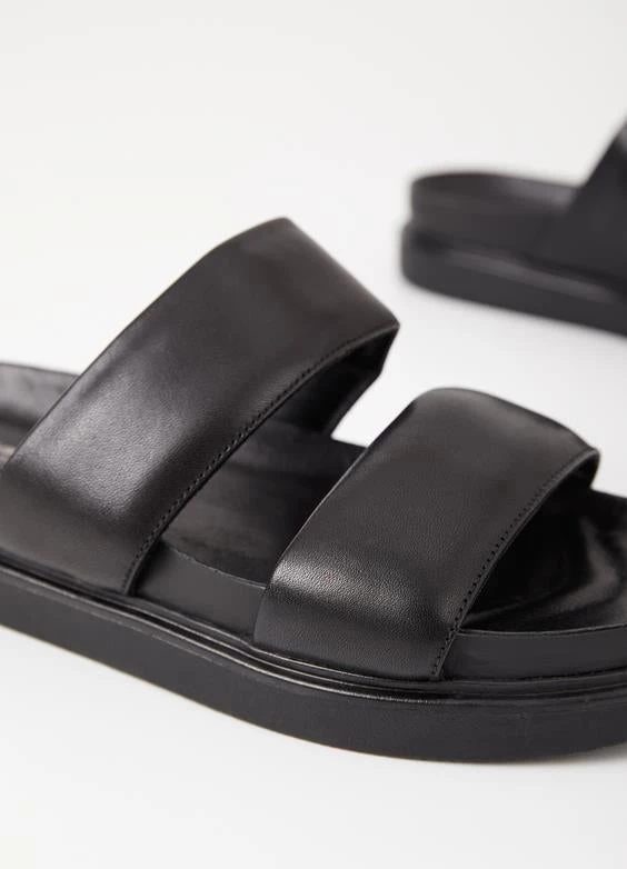 Minimal sandals Erin has a pared down, clean design. The monochrome upper is made from off-white leather, featuring a two-strap design with hook-and-loop fastening, open toes and moulded insoles. The style is grounded by to