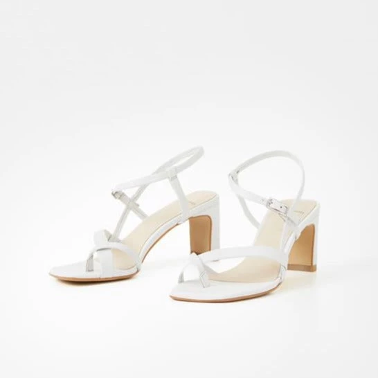 Strappy sandals Luisa is new for the season and a true style treat. The minimalist upper, made from slender black leather straps, is designed with sharp square toes and wide heels for a contemporary look. The slim straps criss-cross over the foot and fasten around the ankle for a secure fit. Details include pin-buckle fastening and 76 mm high heels.